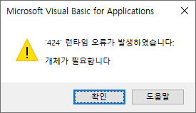 둘째, 삭제된 워크시트를 가리키고 있는 변수를 사용하려 하면 '424 런타임 오류가 발생하였습니다. 개체가 필요합니다' 오류가 발생합니다.