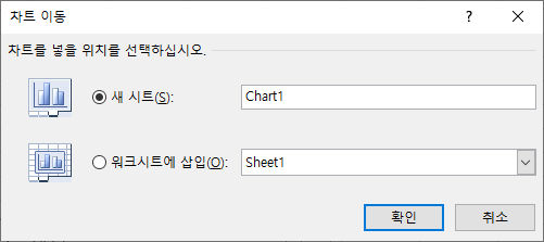 또는 차트를 선택하면 나오는 리본 메뉴 '차트 도구 > 디자인 > 차트 이동'을 선택하셔도 됩니다.