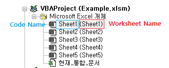NOTE - CodeName은 프로퍼티로 이미 사용되고 있기 때문에 워크시트의 코드 네임에 'CodeName'이라는 단어는 사용 하실 수 없습니다. 'CodeName'이라는 단어를 사용하게 되면 '컴파일 오류입니다: 수식어가 잘못되었습니다' 오류가 발생합니다. 다른 이름을 사용 하셔야 합니다.