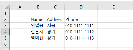 ' B2에 쓰기. 아무런 offset 없음. 예를 보여주기 위해 쓴거지 실제로 이렇게 코드 안 씀