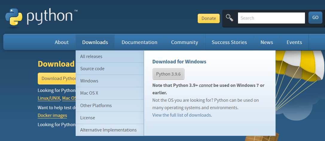 본 튜토리얼을 수행하기 전 가장 먼저 해야 할 일은 파이썬을 설치하는 것이다. 파이썬은 파이썬 공식 홈페이지[여기]의 Download 페이지에서 각자의 OS에 맞는 파이썬을 다운 받을 수 있다.