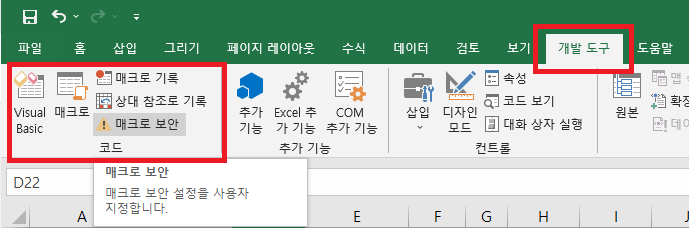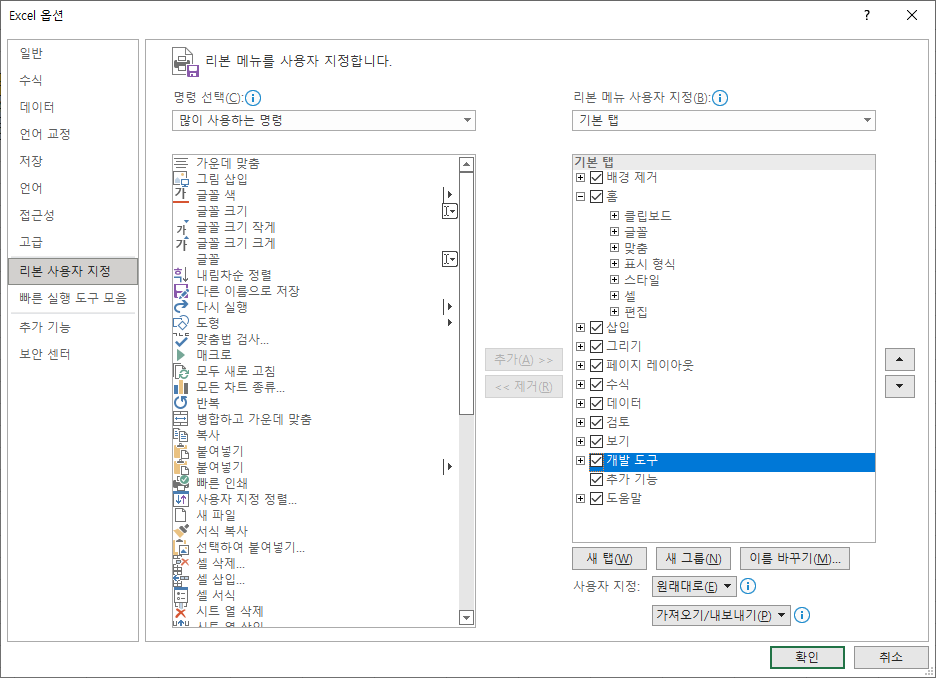 1단계. 개발 도구 탭 활성화