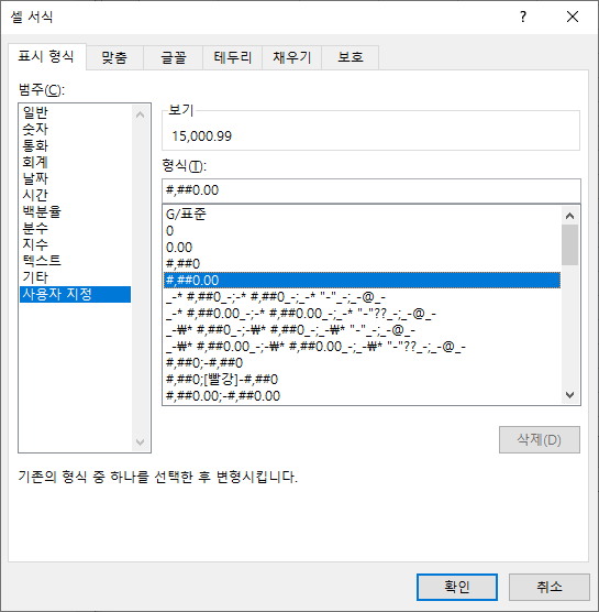 사용할 서식을 파악하는 빠른 방법은 Excel 워크시트에서 셀 서식을 사용하는 것입니다. 예를 들어 셀에 숫자를 추가합니다. 그런 다음 마우스 오른쪽 버튼을 클릭하고 원하는 방식으로 셀 서식을 지정합니다. 형식이 마음에 들면 왼쪽의 범주 목록 상자에서 사용자 지정을 선택합니다.이것을 선택하면 형식 텍스트 상자에서 포멧 문자열을 볼 수 있습니다.