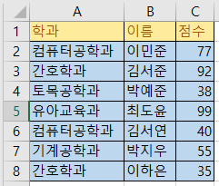 여러분이 아래와 같은 학생 성적 워크시트를 가지고 있다고 상상해 봅시다.