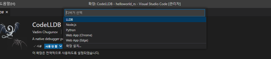 만일 여러분이 위 확장 모듈들을 설치하지 않았다면 rust-analyizer는 디버깅 세션을 시작할 때 위 확장 모듈이 필요하다는 오류와 함께 VS Code 마켓으로 연결되는 링크를 보여 줄 것이다.
