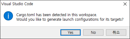 VS Code는 자동으로 Cargo.toml을 검색하여 이를 이용해 launch configuration을 생성한다.