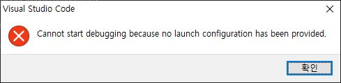 LLDB 선택 이후 아래와 같이 launch configuration이 아직 설정되지 않았다라는 에러 박스가 출력되지만 당황하지 말고 확인을 클릭하도록 한다.